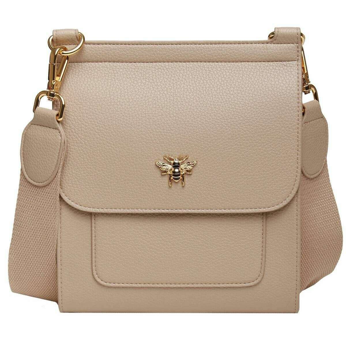 Ce sac crossbody Bloomsbury pour femmes de la marque Alice Wheeler London est fabriqué à partir de faux cuir 100% végétalien et est présenté en beige. Il mesure 18 cm (hauteur) x 20 cm (largeur) x 12 cm (profondeur). Il est recommandé d'essuyer avec un tissu pour garder ce sac en bon état. Tous les sacs sont complets avec un emballage Alice Wheeler. Le sac à bandoulière Alice Wheeler London Bloomsbury - Stone Beige fera un sac de tous les jours magnifique et élégant ou accessoirisera votre tenue du soir lors d'un événement plus formel. Équipé d'une sangle transversale réglable, vous pouvez trouver une longueur qui vous convient le mieux pour le transport confortable. Le Bloomsbury propose une section principale de bonne taille et est sécurisée avec un volet et un fermoir magnétique. Le logo emblématique et élégant de Bumble Bee arrête ce magnifique design ainsi que nommé la marque à l'arrière.