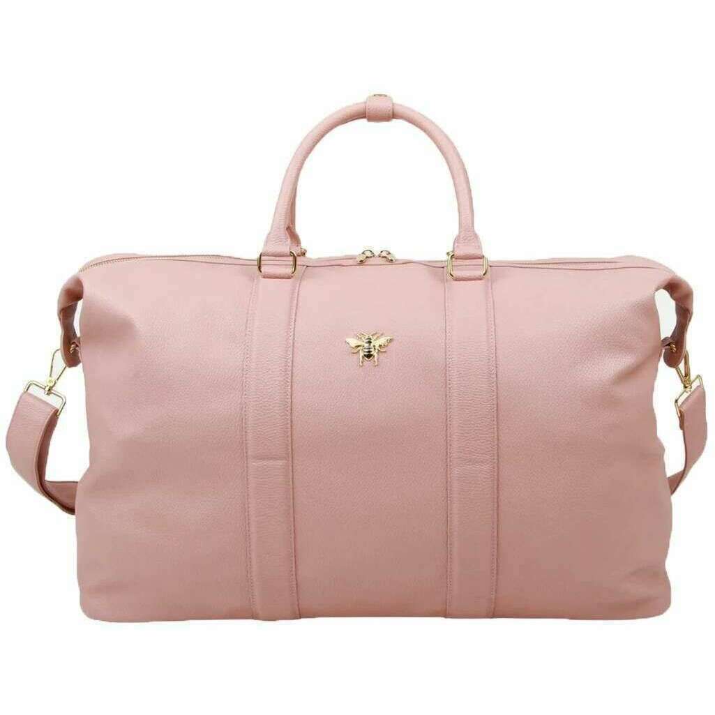 Ce sac de week-end Marylebone féminin bien fait d'Alice Wheeler London est disponible en couleur rose et est fabriqué à partir de faux cuir 100% végétalien. Il mesure 30 cm (hauteur) x 50 cm (largeur) x 28 cm (profondeur). Tous les sacs sont complets avec un emballage Alice Wheeler. Le sac de week-end Alice Wheeler London Marylebone - Pink est un incontournable si vous êtes un voyageur fréquent ou que vous portez lourd. Parfait pour le week-end, prendre au gymnase ou avoir pour un bagage à main. Avec deux poignées de transport idéales pour porter sur vos épaules, une bandoulière longue détachable, des poches internes pour l'organisation et le stockage et une usure légère pour la facilité lors du transport. Le design élégant et simple avec le logo d'abeille de miel signature qui lui est orné complète ce sac, ce qui vous fait regarder la pièce en déplacement.