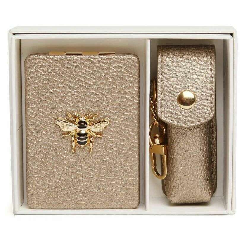 ({Si ["vous a apporté par la marque Alice Wheeler London, cet ensemble de cadeaux de miroir compact et de rouge à lèvres oblongs de bronze est fabriqué à partir de faux cuir 100% végétalien. Il mesure le miroir - 8,5 cm (hauteur) x 6cm (largeur). Support de rouge à lèvres - 8,5 cm (hauteur) x 3 cm (largeur) x 3 cm (profondeur). Tous les compacts sont livrés avec un emballage Alice Wheeler. L'ensemble cadeau Alice Wheeler London OBLONCH compact et le coffre-cadeau de portefeuille - Bronze fera un cadeau étonnant pour vous-même ou quelqu'un que vous aimez. L'embellissement des abeilles magnifiquement emblématique est présenté sur le miroir, et les deux ont des couleurs et du matériel assortis, ce qui en fait une paire assortie élégante. Le miroir est idéal pour les retouches quotidiennes, et le porte-rouge à lèvres est parfait pour protéger votre rouge à lèvres préféré de tous les jours. Ce sera un ajout parfait à votre sac de tous les jours, ajoutant la commodité. "! =" "]})