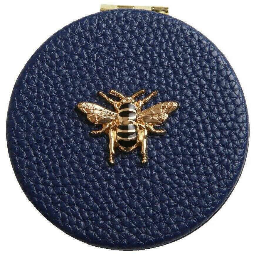 Présenté par la marque Alice Wheeler London, ce miroir compact Round Navy pour femmes est fabriqué à partir de faux cuir 100% végétalien. Il mesure 7 cm (hauteur) x 7 cm (largeur). Il est recommandé de s'essuyer avec un tissu humide pour garder ce compact en bon état. Tous les compacts sont complets dans Alice Wheeler London Packaging. Le miroir compact Round Alice Wheeler London - Navy est l'accessoire parfait qui est essentiel à emporter avec vous dans votre sac à main. L'embellissement d'abeille magnifiquement emblématique orne l'avant. À l'intérieur se trouve un miroir d'agrandissement 7x avec un cadre métallique à deux tons dorés qui est idéal pour ces retouches quotidiennes.