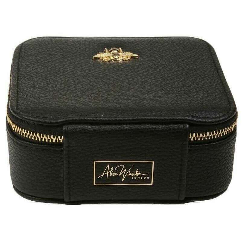 Fabriqué à partir de cuir en faux végétalien et de faux daim se trouve cette boîte de bijoux de voyage pour femmes noires par la créatrice Alice Wheeler London. Il mesure 13,5 cm (hauteur) x 13,5 cm (largeur) x 5 cm (profondeur). Toutes les boîtes à bijoux sont complètes avec Alice Wheeler Emmacking. The Alice Wheeler London Travel Jewellery Box - Black deviendra un favori de tous les temps avec sa grande organisation et sa taille parfaite pour se glisser dans n'importe quel sac quelle que soit l'occasion. Avec un rouleau d'anneau idéal pour les boucles d'oreilles et vos anneaux les plus usés, 3 petits compartiments pour les plus petits morceaux, 2 compartiments latéraux plus grands pour les colliers et les bracelets et un miroir sur le couvercle. La fermeture à glissière en or offre la sécurité et le luxe. Complet avec le logo de miel signature orné en haut de cette affaire.