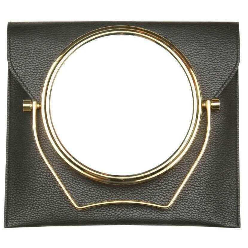 La fabrication de la pochette 100% végétalienne en faux cuir est ce miroir de voyage pour femmes noires par la designer Alice Wheeler London. Il mesure 18,5 cm (hauteur) x 20,5 cm (largeur). Tous les rétroviseurs sont livrés avec un emballage Alice Wheeler. Le miroir de voyage et étui Alice Wheeler London - Black est un accessoire élégant et extrêmement pratique à emporter avec vous lorsqu'il est en déplacement. Le logo d'abeille magnifiquement embelli se trouve sur le devant du boîtier et la fermeture de goujon de presse sécurise le miroir à l'intérieur. À l'intérieur, vous trouverez un miroir de grossissement 7x avec un support afin que vous puissiez vous vérifier facilement.