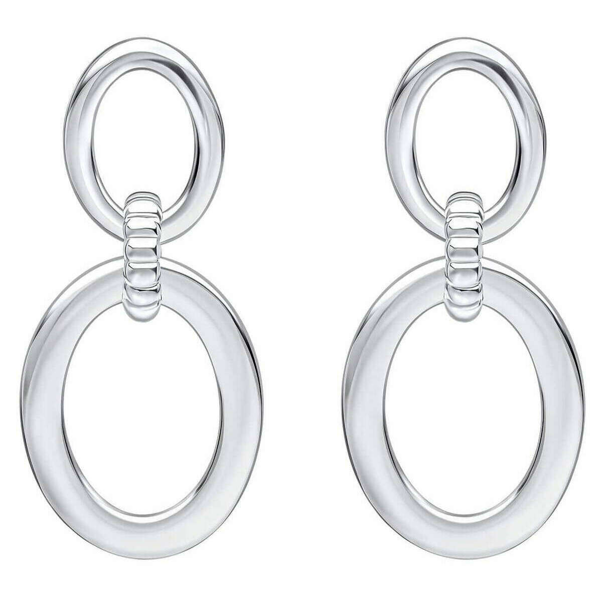 Boucles d'oreilles de liaison de connexion texturée à double ovale - argent - argent