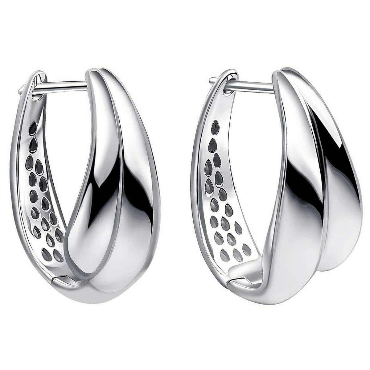 Début de boucles d'oreilles à cerceau d'onde organique - Argent