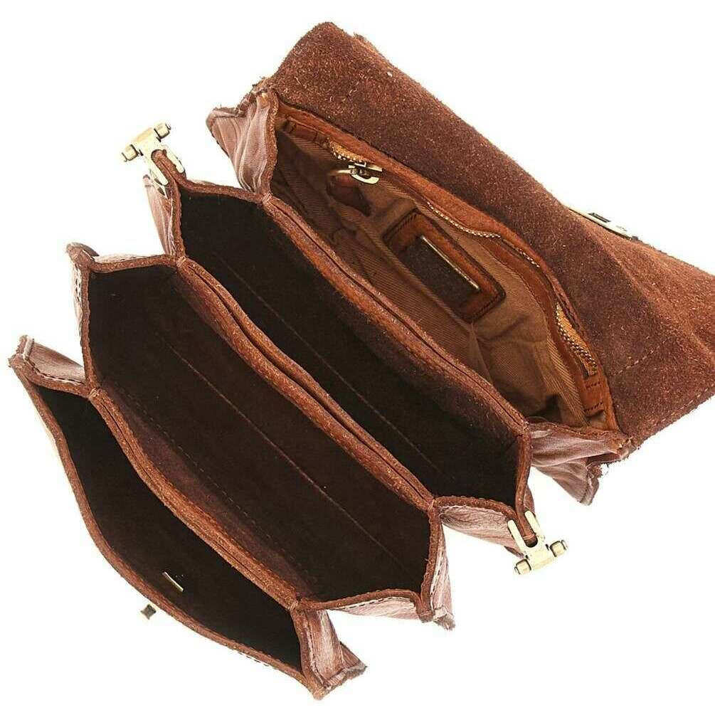 • Fermoir pivotant , Bandoulière amovible , Bandoulière amovible réglable , 4 Compartiments internes , Poches internes , Tannage végétal , Doublé en coton , Longueur de la bandoulière 59 cm , Longueur de la bandoulière 115/130 cm