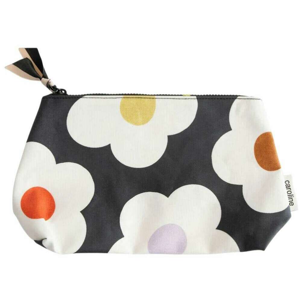 Trousse de beauté en toile enduite multi-fleurs Caroline Gardner - Noir/Crème