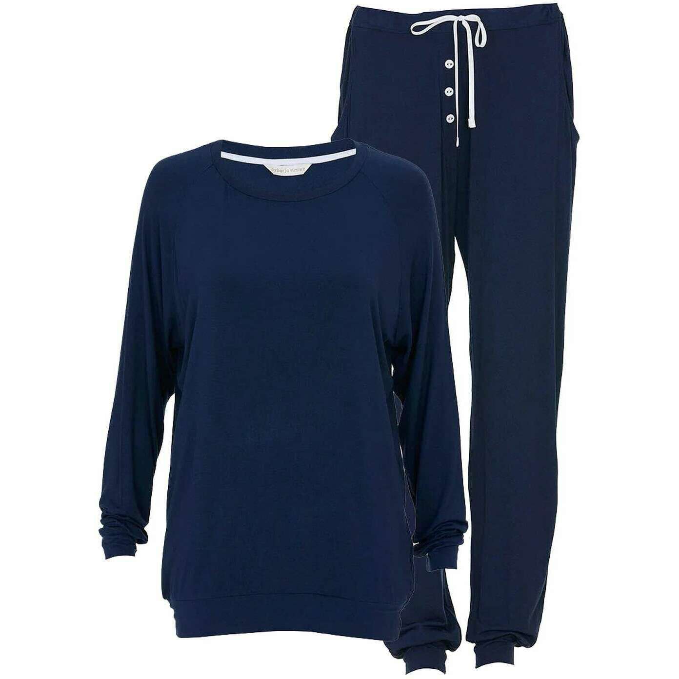 Cet ensemble de pyjama pour femme en jersey ample marina de la marque Cyberjammies est composé à 95% de modal et à 5% d'élasthanne et est présenté en bleu marine. De plus, les pyjamas bleu marine sont conçus dans un motif uni. Il est recommandé de laver en machine à l'envers, de ne pas tremper, de laver avec des couleurs similaires pour garder ces pyjamas en bon état. Tous les pyjamas sont livrés avec des étiquettes cyberjammies. L'ensemble pyjama en jersey Cyberjammies Marina Slouch - Bleu marine rendra ces moments confortables encore plus confortables. Portez ce pyjama tout simplement magnifique, ample, mais pas trop ample, chaque fois que vous vous détendez à la maison, profitez du matériau doux et extensible et embrassez-le comme une seconde peau. Le bas présente une taille élastiquée avec des boutons plats et un cordon de serrage réglable pour assurer un confort absolu. Conçu avec soin pour des nuits reposantes et des matinées détendues, le pyjama Jersey Slouch deviendra un incontournable de votre collection.