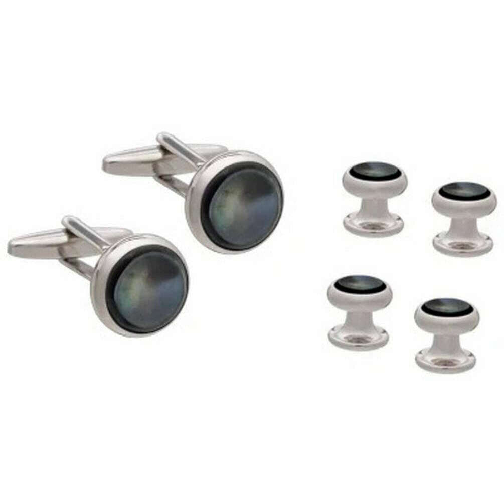 David Van Hagen Smokey Mother Of Pearl Robe Stud et boutons de manchette - Gris/Argent