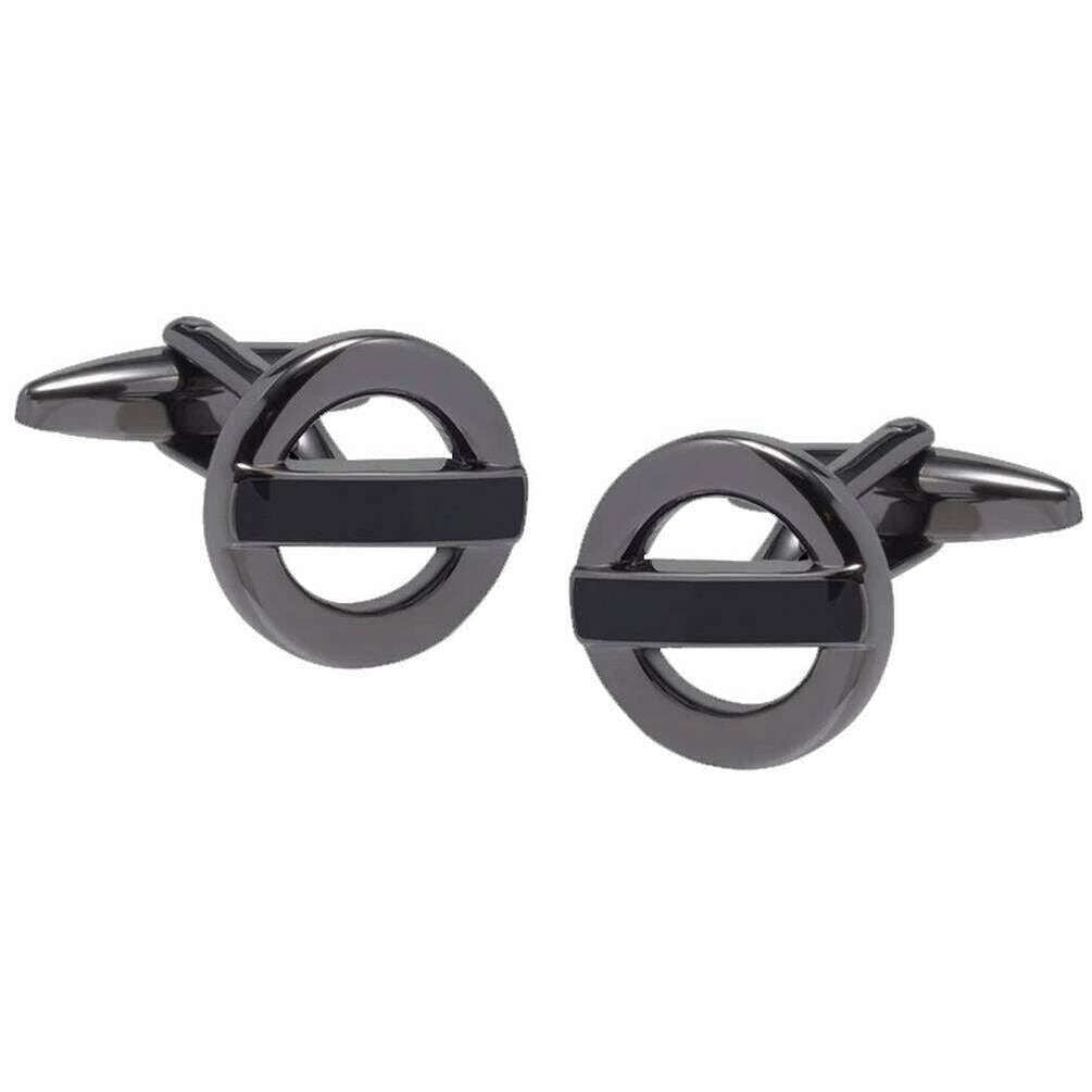 • Inspiré par le panneau du métro de Londres, la barre en émail noir, le cercle en bronze poli, la base de bouton de manchette standard