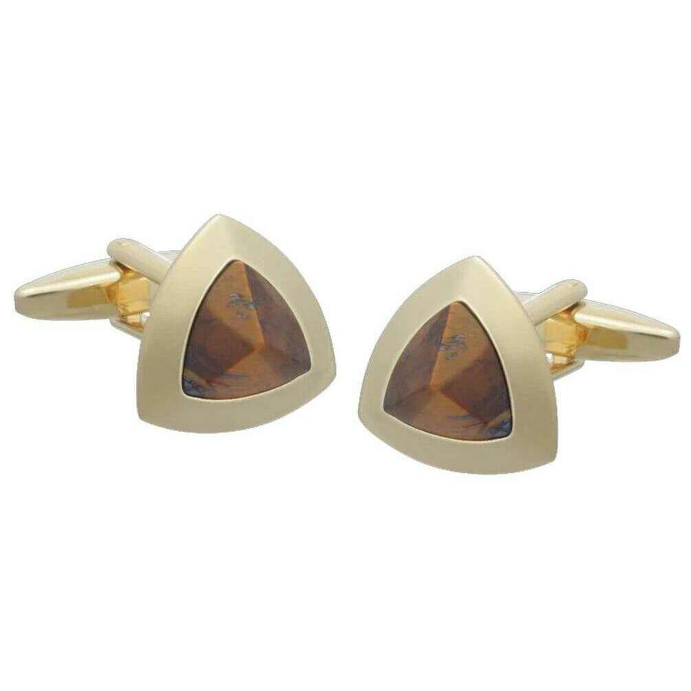 Boutons de manchette angulaires David Van Hagen en œil de tigre - Marron/Or