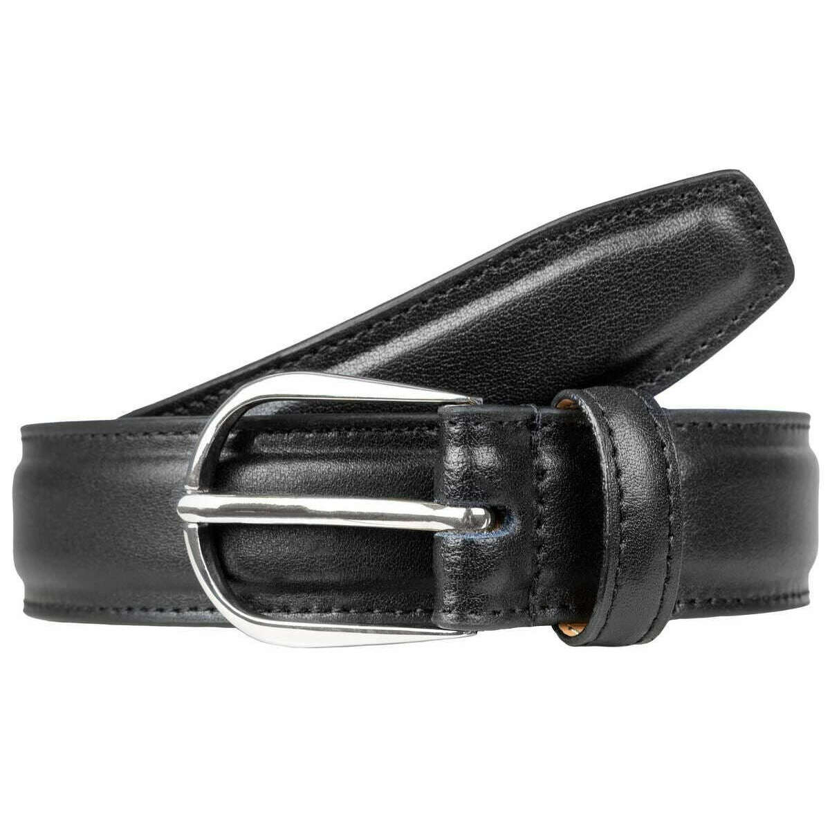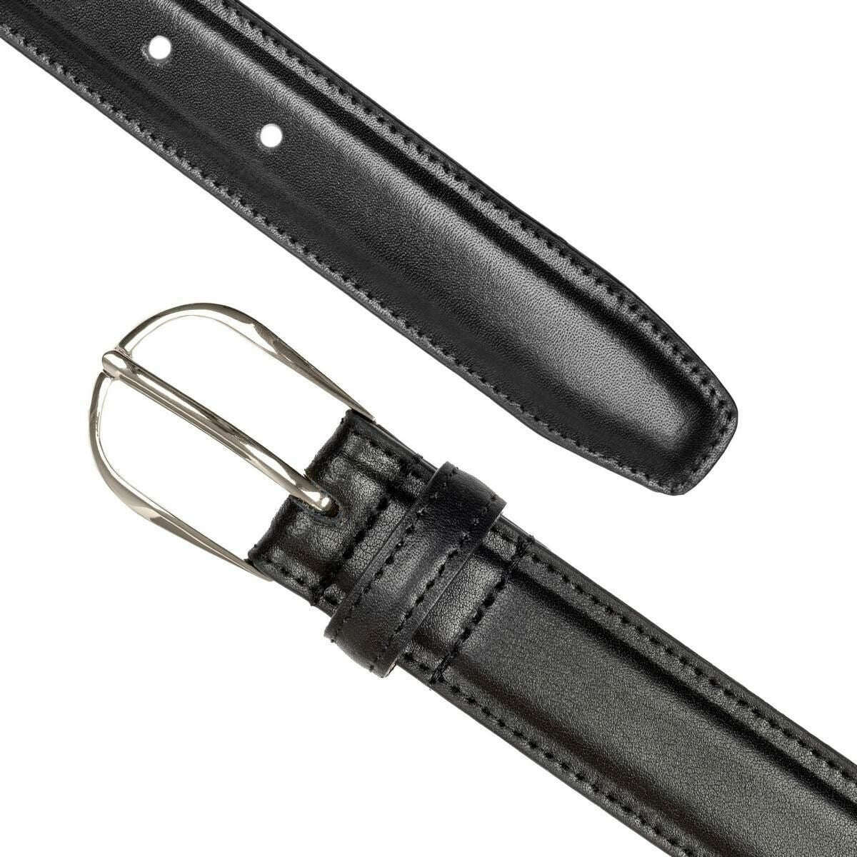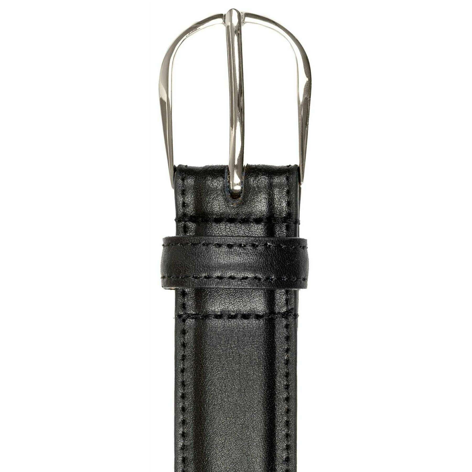 • Bords cousus, doublé de daim nubuck, boucle ovale, boucle sans nickel ni plomb, passant en cuir unique, pointe de ceinture trapézoïdale, cinq trous, largeur 3 cm