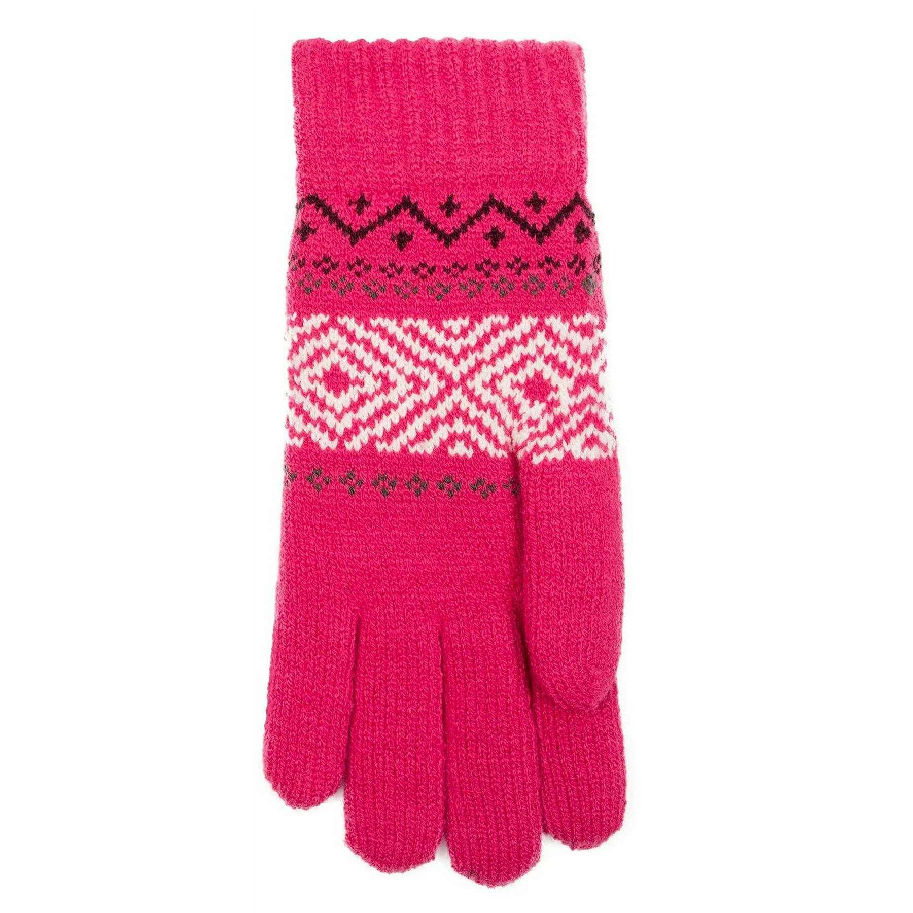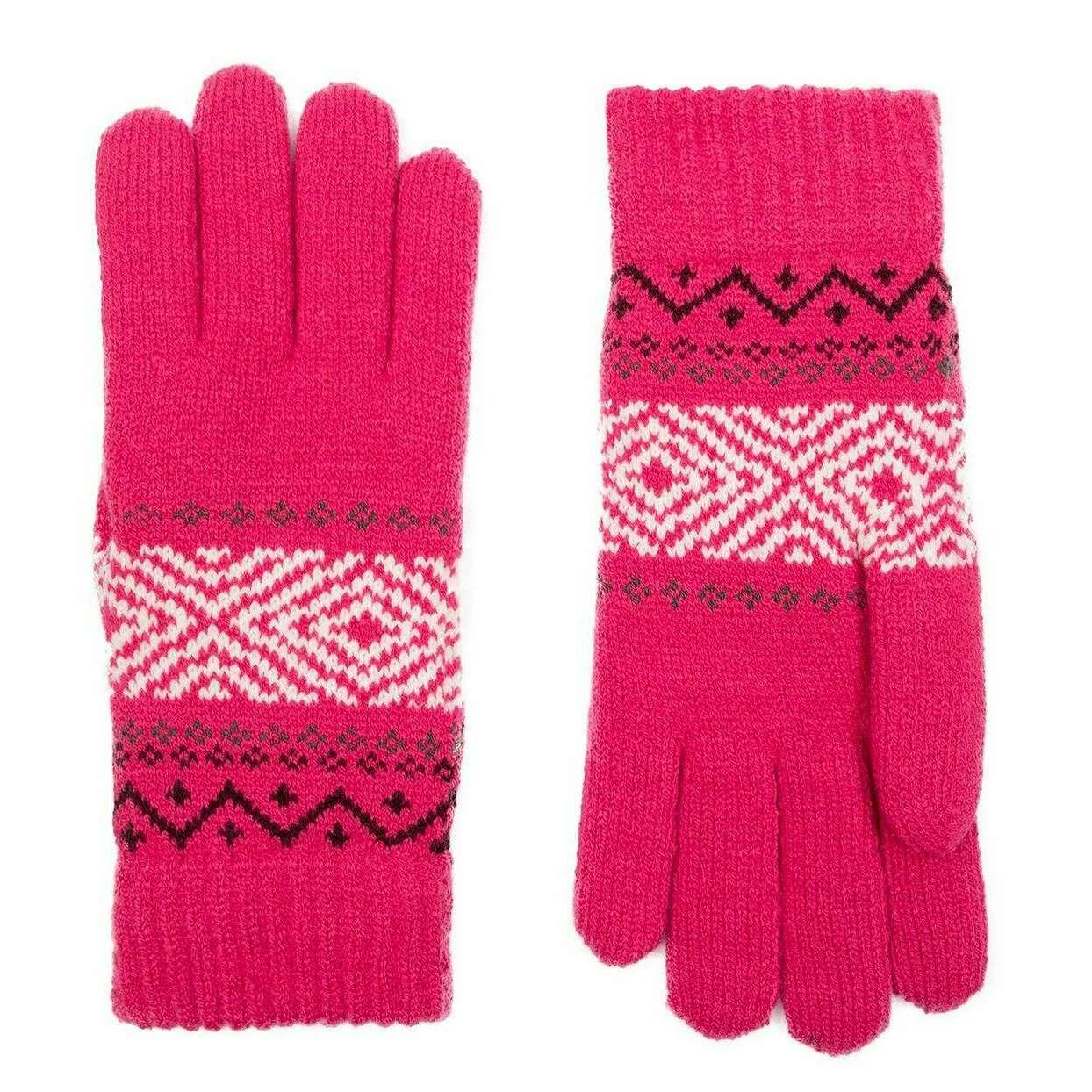 Dents Jacquard Gants en tricot géométrique - Fuchsia rose