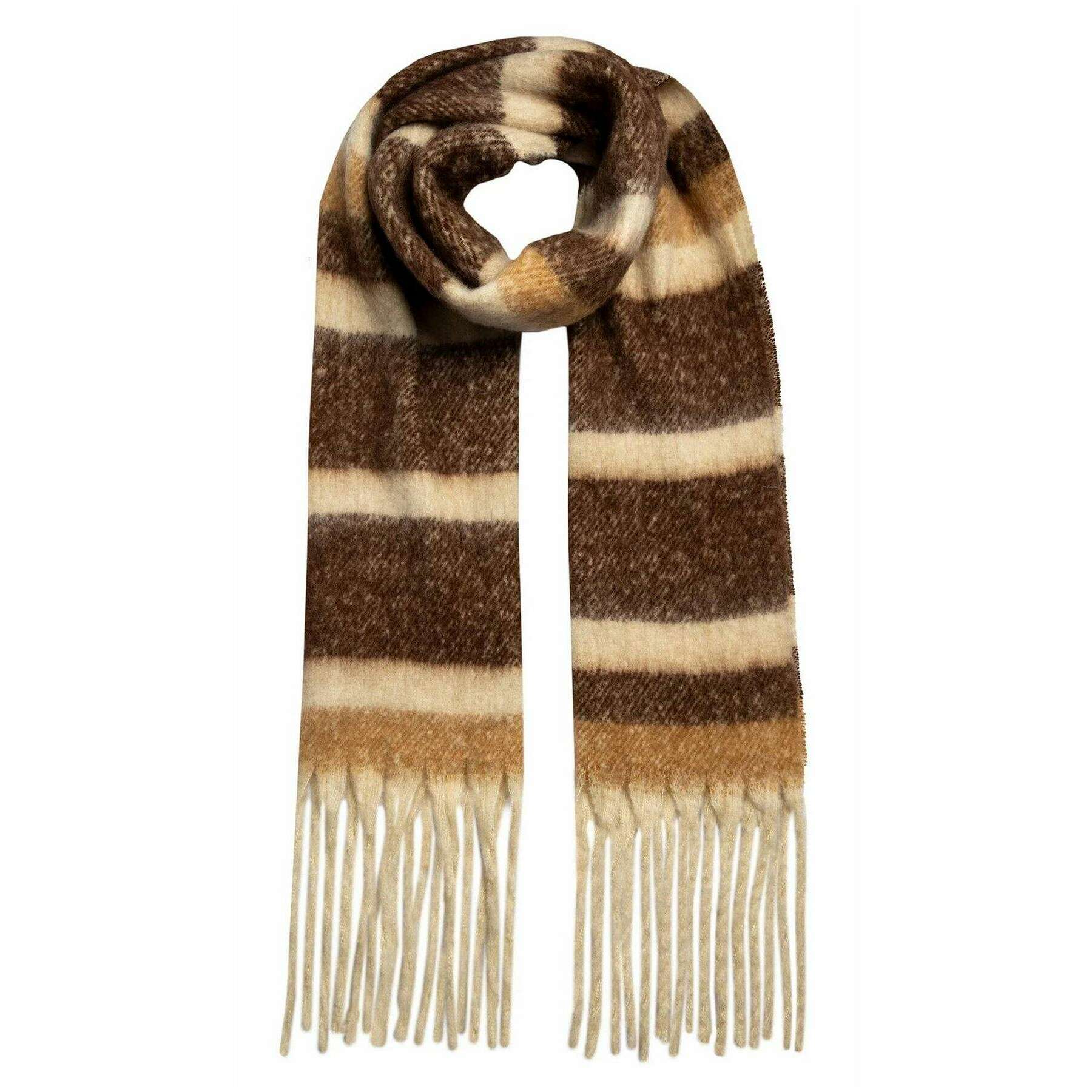 Écharpe couverture à rayures Dents - Brun chocolat/beige camel