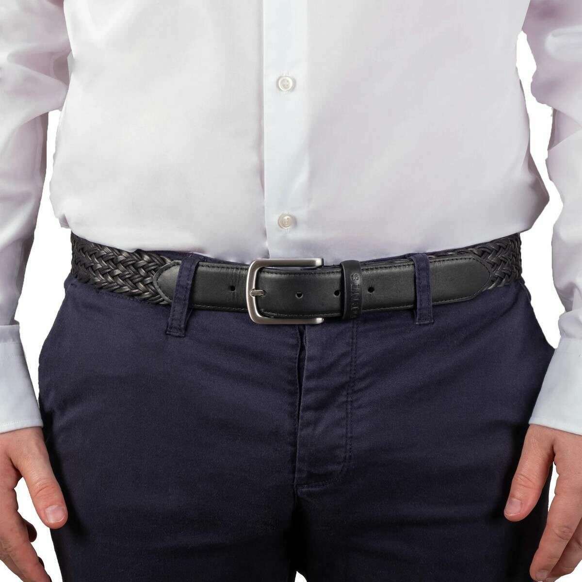 Cette ceinture en cuir et coton tressé pour hommes de Dents est de couleur noire et est fabriquée à 100 % en cuir. Toutes les ceintures sont livrées avec des étiquettes de bosses. La ceinture en cuir et coton tissé Dents - Noir est un choix idéal si vous cherchez à apporter un peu de style à votre garde-robe. Sa structure tressée lui confère un look général époustouflant qui complètera parfaitement votre tenue lors d'occasions décontractées et formelles. Cette ceinture comporte un seul passant en cuir, des raccords de couleur nickel satiné et n'est pas doublée.