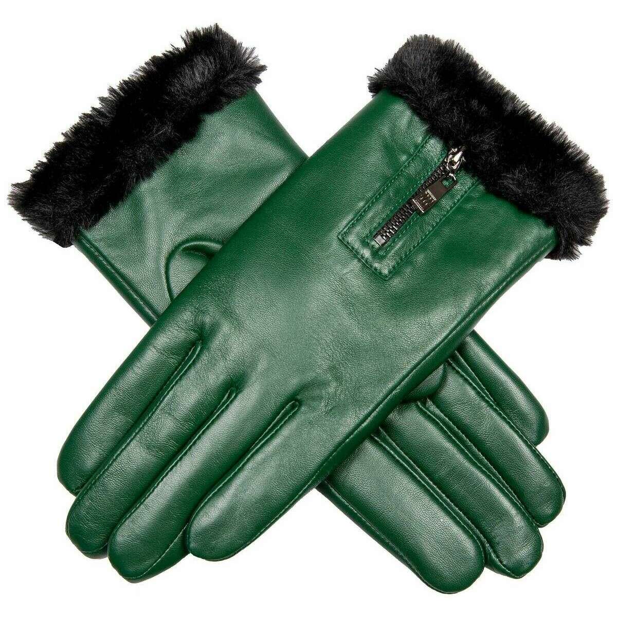 Ces gants en cuir à revers Yasmin pour femme de la marque Dents sont fabriqués à partir de 100 % cuir de mouton et d'une doublure en fausse fourrure de polyester et sont présentés en vert. De plus, les gants vert forêt sont conçus dans un motif uni. Tous les gants sont livrés avec des étiquettes de bosses. Les gants en cuir Dents Yasmin Cuff - Vert forêt sont une paire moderne avec une fermeture éclair décorative et un revers et une doublure en fausse fourrure douce vous donnant un look élégant qui ne manquera pas d'attirer l'attention tout en gardant vos mains au chaud et super confortables. Ils sont magnifiquement doux et lisses et disposent d’une technologie d’écran tactile. C'est l'ensemble luxueux parfait à ajouter à votre garde-robe d'hiver.