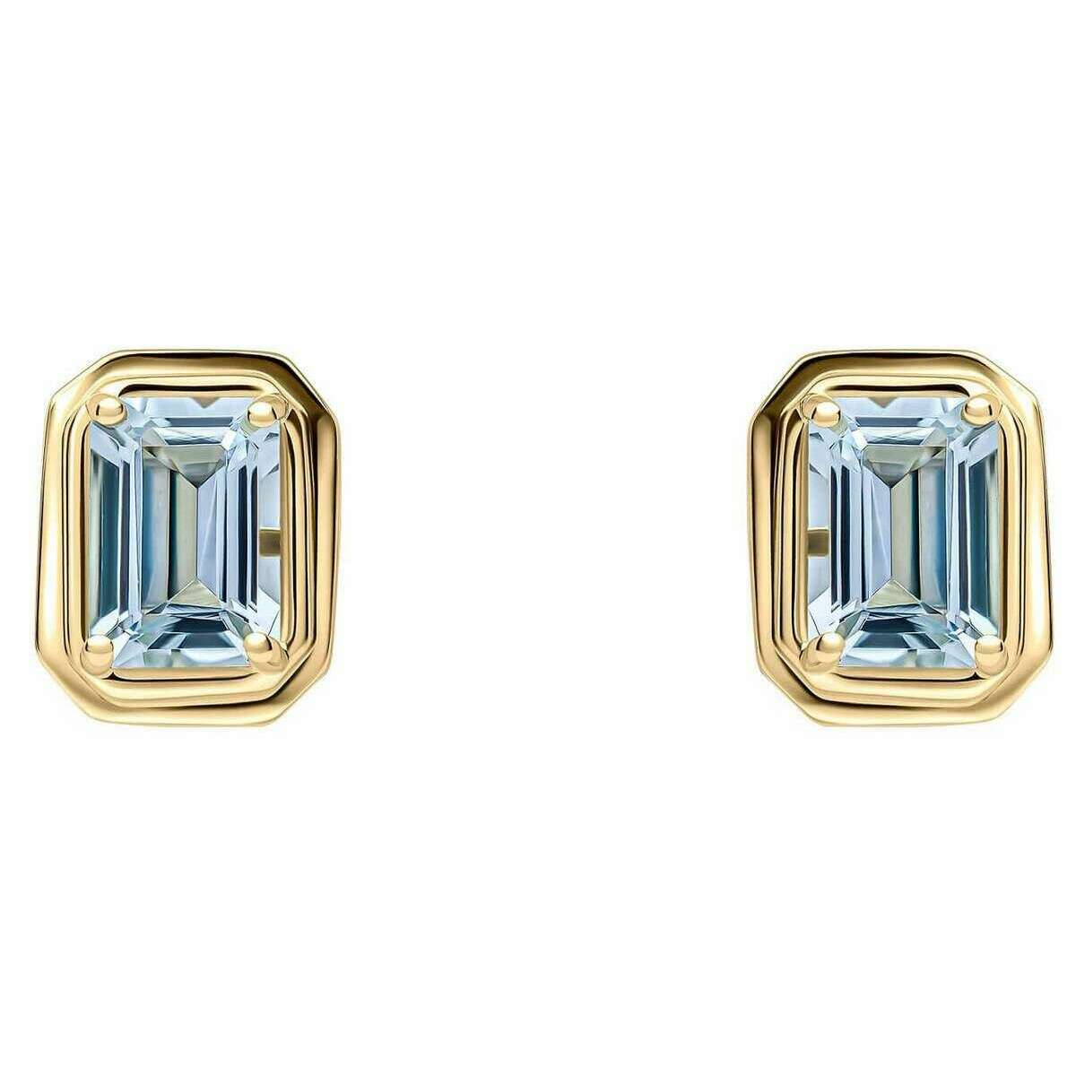 Boucles d'oreilles à tige octogonales allongées avec aigue-marine en or 9 carats Elements Gold - Or/Bleu