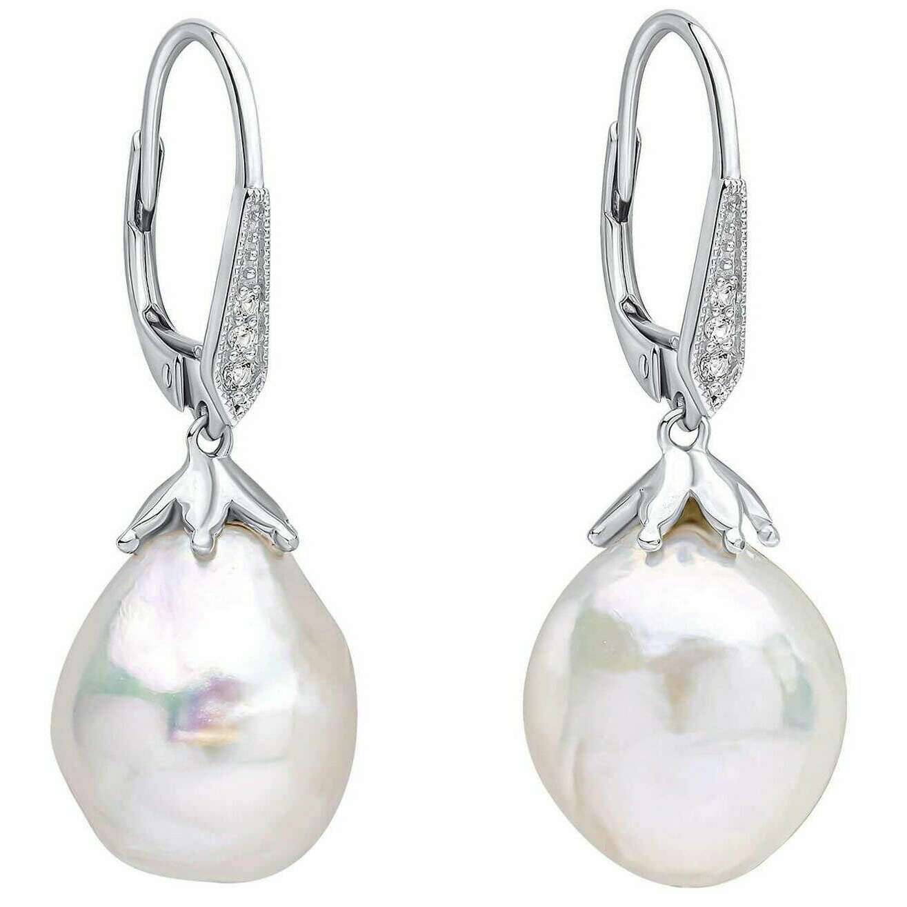 Boucles d'oreilles surdimensionnées en or 9 carats avec perles baroques et topazes Elements Gold - Argent/Blanc