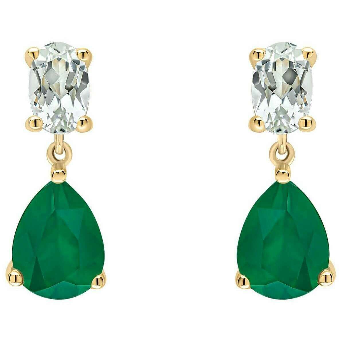 Elements Gold Toi et Moi Boucles d'oreilles pendantes en or 9 carats avec améthyste et onyx - Doré/Vert