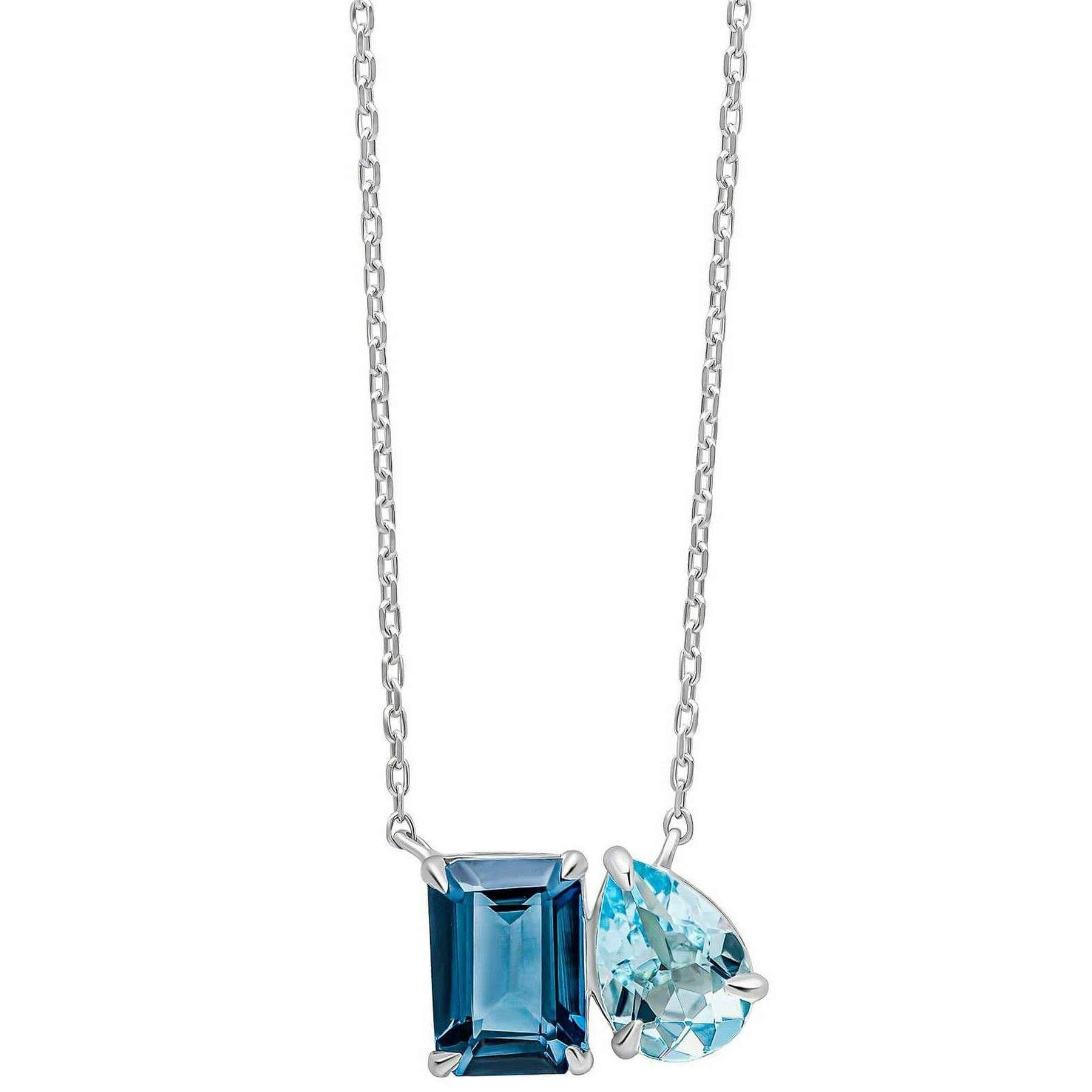 Elements Gold Collier Toi et Moi Topaze Bleue en Or 9 Carats - Or/Bleu