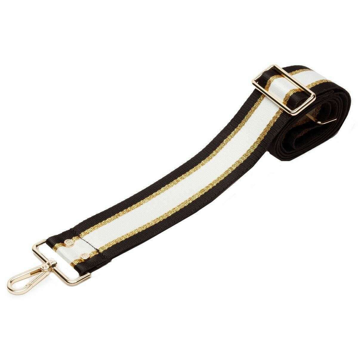 Cette sangle croisée pour femmes bien faite d'Elie Beaumont est disponible en couleur noire / or / crème et est fabriquée à partir de toile. Il mesure 127 cm (hauteur) x 5 cm (largeur). Tous les sacs sont livrés avec Elie Beaumont Packaging. La sangle Elie Beaumont Crossbody - Black / Gold / Cream est un moyen fantastique d'habiller votre sac à bandoulière ou vers le bas, quelle que soit l'occasion! Cette sangle est entièrement réglable, il peut donc être portée en tant que crossbody ou sur l'épaule.
