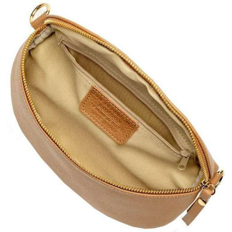 • Sangle en cuir réglable détachable, poche zippée interne, fermeture à glissière, conçue au Royaume-Uni, quincaillerie en or