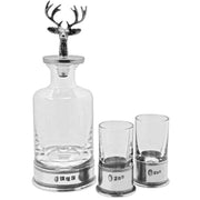 English Pewter Company 180ml Stag Mini Decanter and Shot Glass Box Box - Silver / Clear