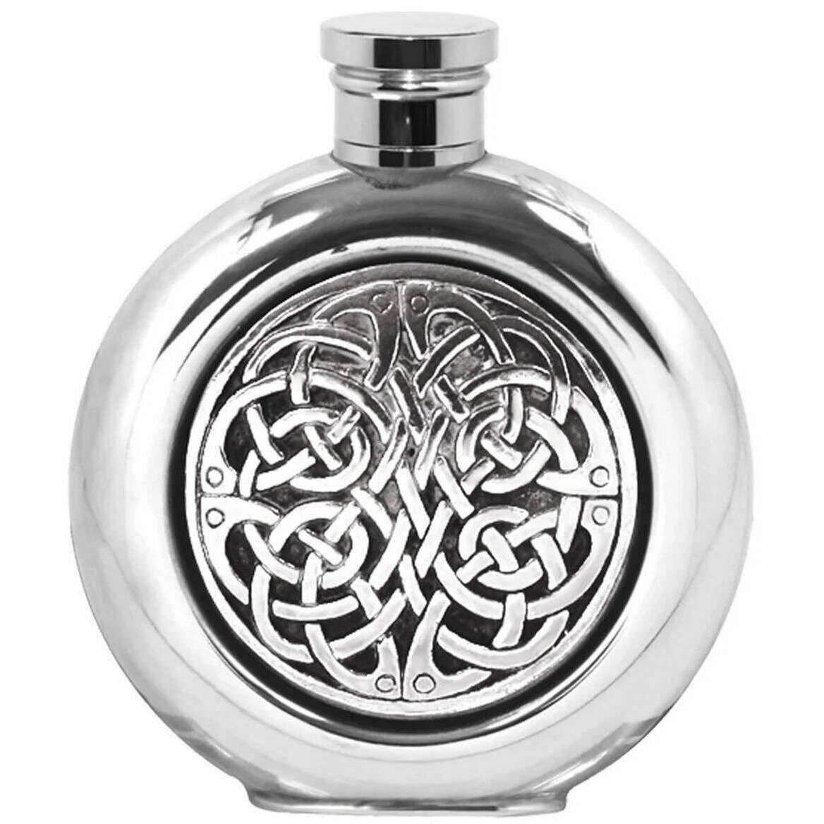 Anglais Pewter Company 4oz Round Celtic Disk Flask - Silver