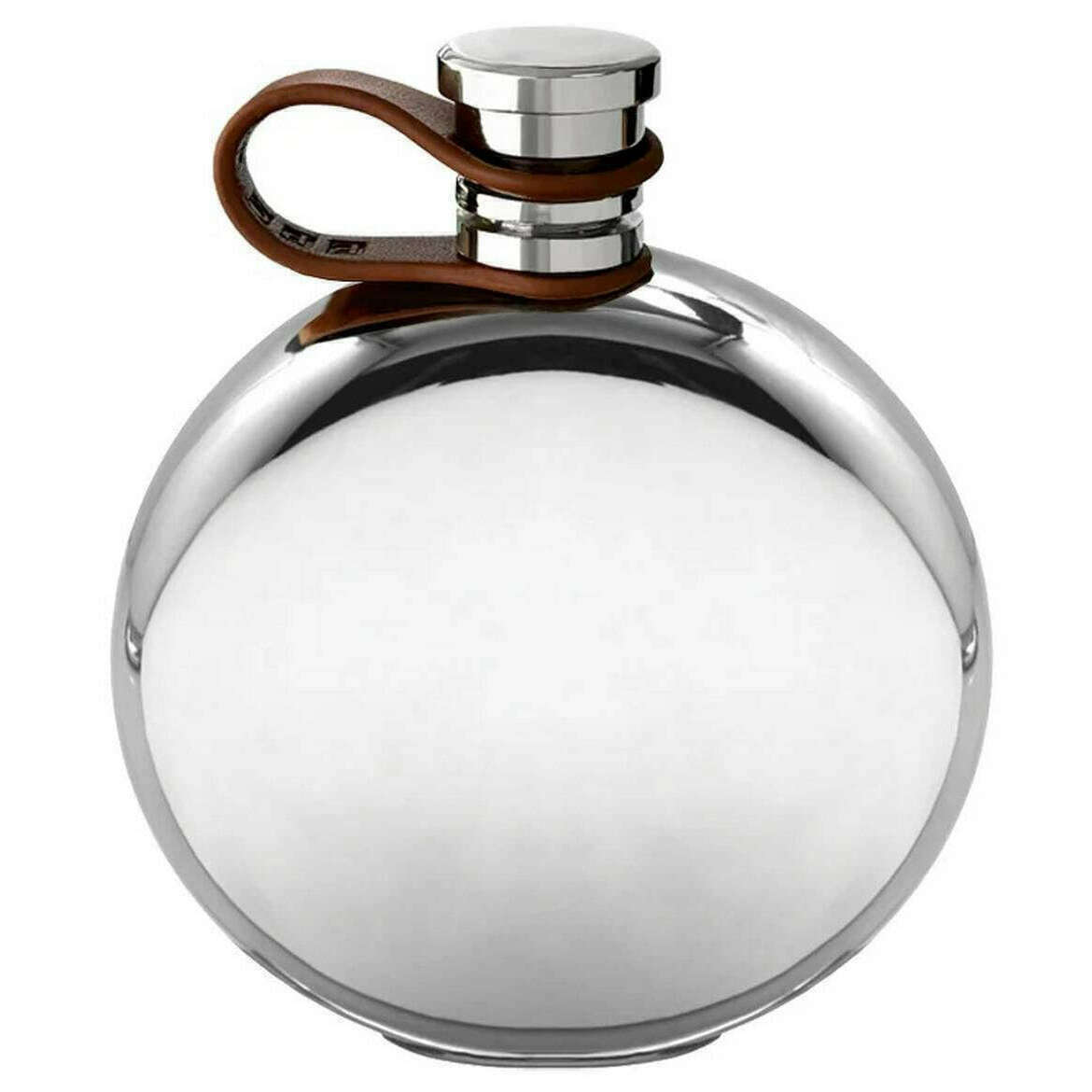 English Pewter Company 4oz Round Leather Flexi Cap Hip Flask - Silver