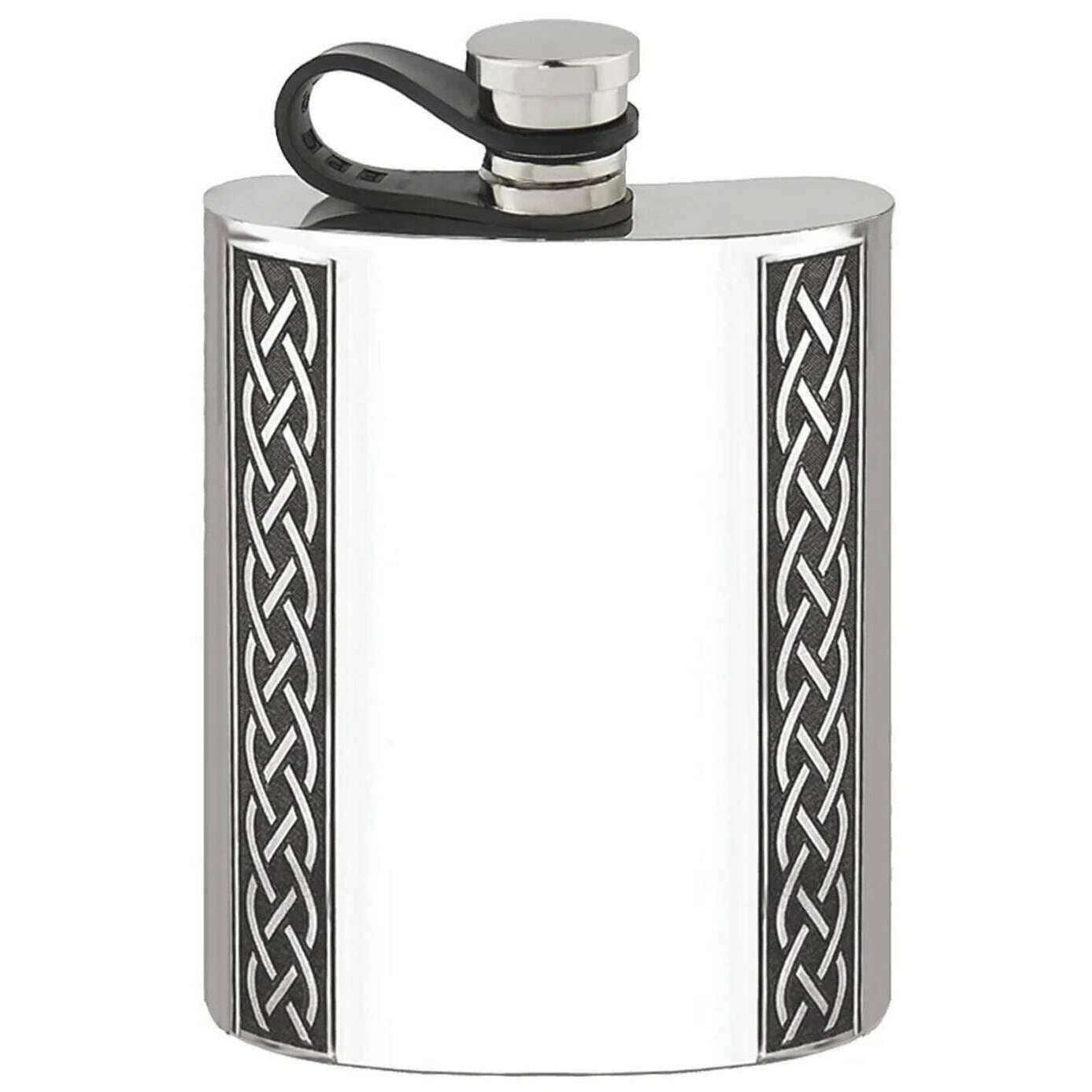 English Pewter Company 6oz Celtic Flexi Cap Hip Flask - Silver