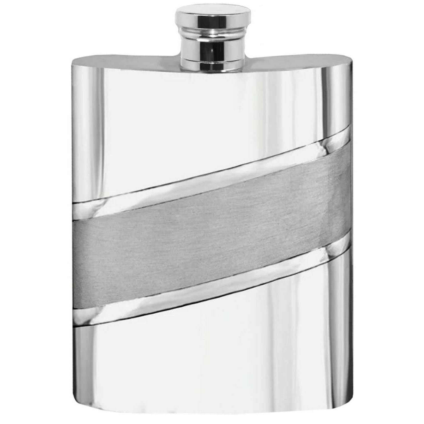 Anglais Pewter Company 6oz Diagonal Satin Band Hip Flask - Silver