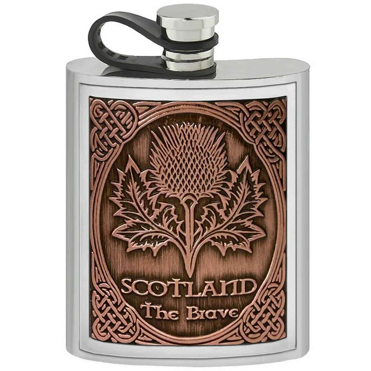 Designer English Pewter Company vous a apporté ce flacon unisexe en étain et en cuivre à l'aide de tons oranges en argent / cuivre. Il mesure 12 cm (hauteur). English Pewter Company a fait ce ballon en étan en relief en brise en Grande-Bretagne de 6 oz en Grande-Bretagne. Toutes les flacons de hanche sont livrés avec un emballage de société d'étain anglais. La Flowter Chistrare en étain en étage en étage anglaise - Orange Silver / Copper Orange dispose d'un haut captif en cuir élégant, ajoutant une sophistication subtile à la pièce. Parfait pour stocker votre boisson préférée et vous permettre de le siroter en déplacement, en le gardant frais pour que chaque gorgée soit aussi bonne que la précédente. Il présente un design de chardon complexe qui est la fleur nationale écossaise qui représente la résilience et la beauté. Ce ballon de hanche est léger et compact, idéal pour glisser dans votre poche pour les gorgées sur le gout.