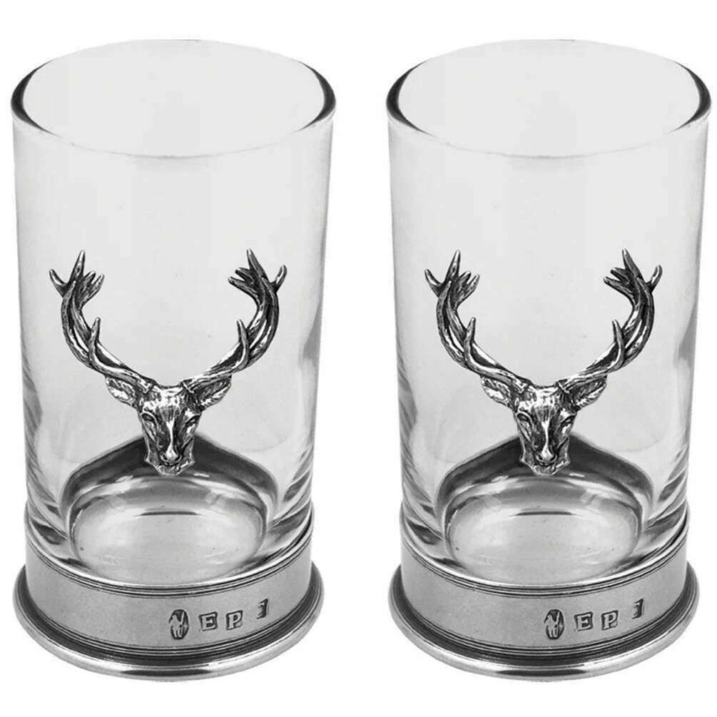 English Pewter Company 8 3/4 Double Stag Highball Spirit Glass Set - Silver / Clear