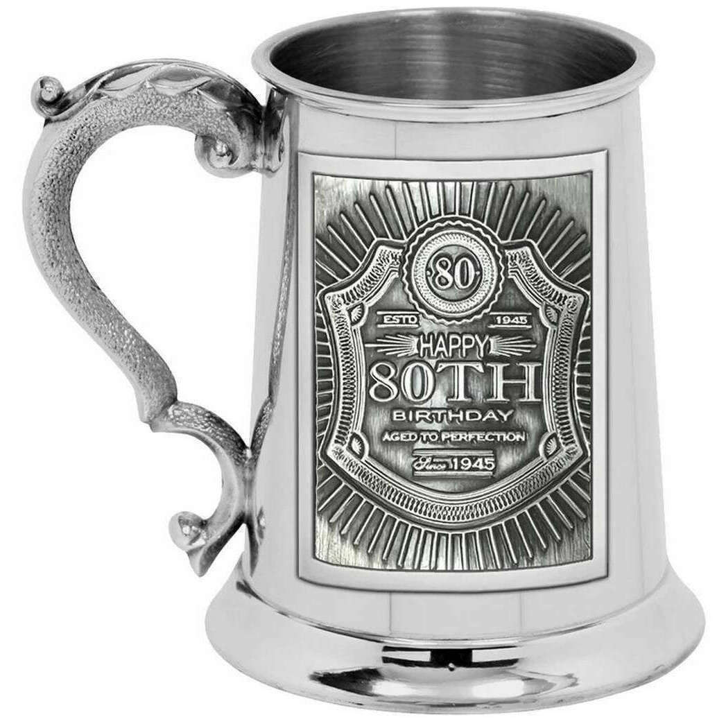 Ce 80e étain en étan en relief pour hommes ou femmes est façonné par la marque English Starter Company de couleur argentée et est fabriquée à partir d'étain. Il mesure 12,75 cm (hauteur). English Pewter Company a fait ce tankard en arrière en relief en Grande-Bretagne. Tous les dressions et la verrerie sont livrées avec l'emballage de l'entreprise en étain anglais. La société d'étagère anglaise en relief 80e étain 1 Pint Pint - Silver fera le cadeau parfait pour cet anniversaire spécial. Il dispose d'une poignée robuste avec un design complexe et offrent un attrait classique avec sa finition lourde. Remplissez-le de votre bière préférée ou de votre bière artisanale et soulevez un toast pour l'occasion spéciale. Le matériau de haute qualité garantit qu'il dégage un charme intemporel.