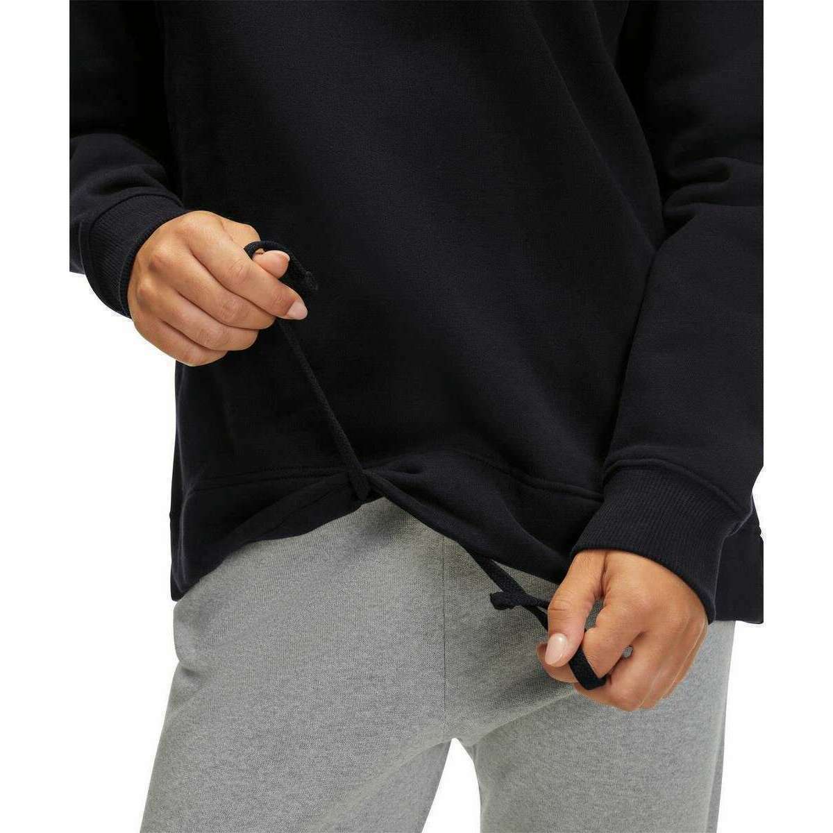 • Ajustement lâche, ourlet doux et réglable, cordon caché, dos allongé, emblème de logo subtil