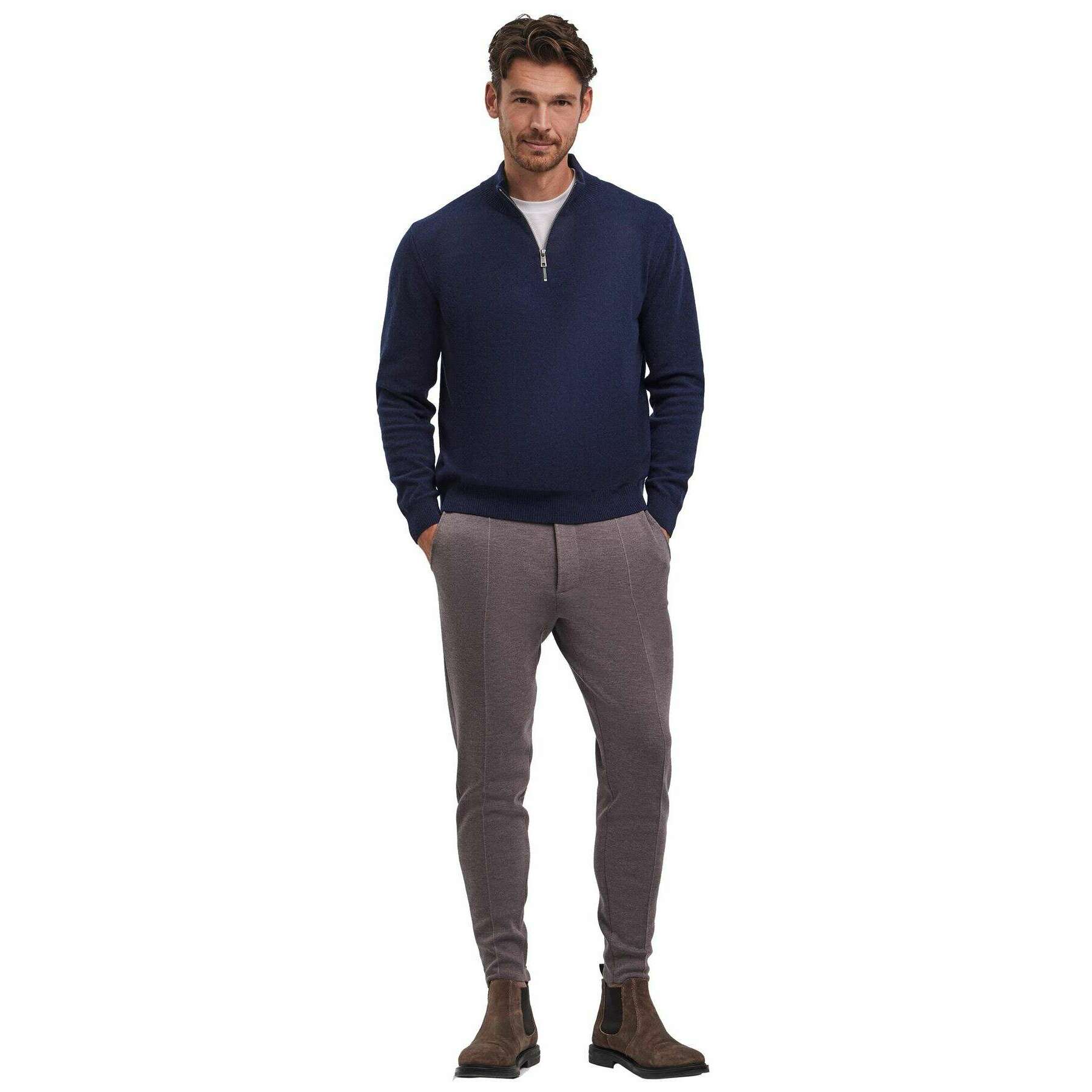 • Maille jersey fin , Coupe Regular , Épaules françaises , Poignets côtelés élastiqués au niveau du tronc et des bas de manches , Col montant