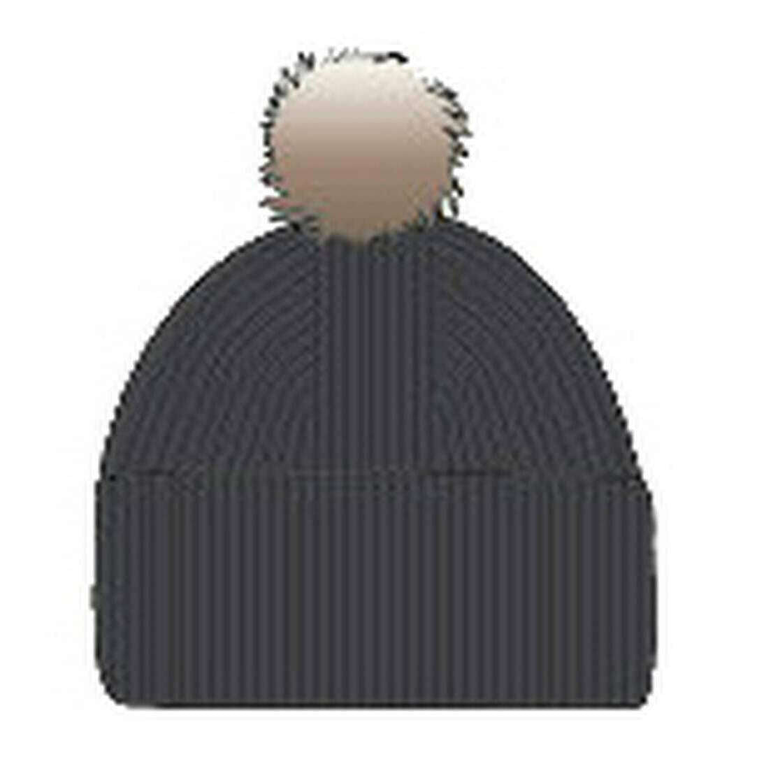 • Contrôle du climat, texture côtelée grossière, pompon en fausse fourrure, manchette à large tournage, 100% mules en laine libre, traitement entièrement façonné