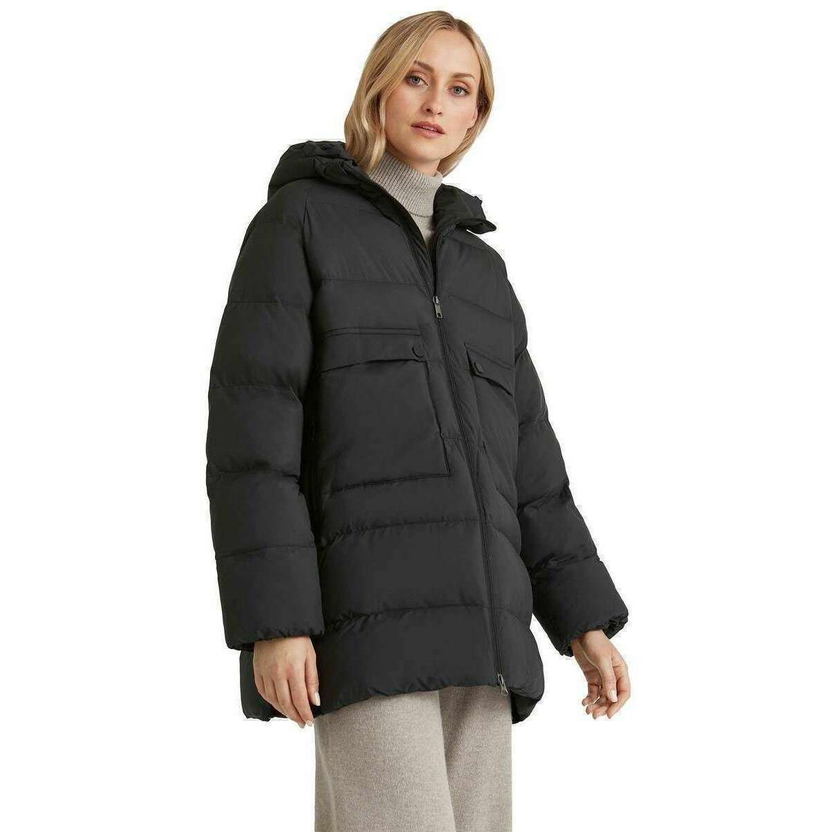• Recyclé, rembourrage léger, coupe plus large, résistant au vent, hydrofuge, chaude, grande capuche réglable, poches de patch, poches de fermeture éclair latérale, longueur moyenne