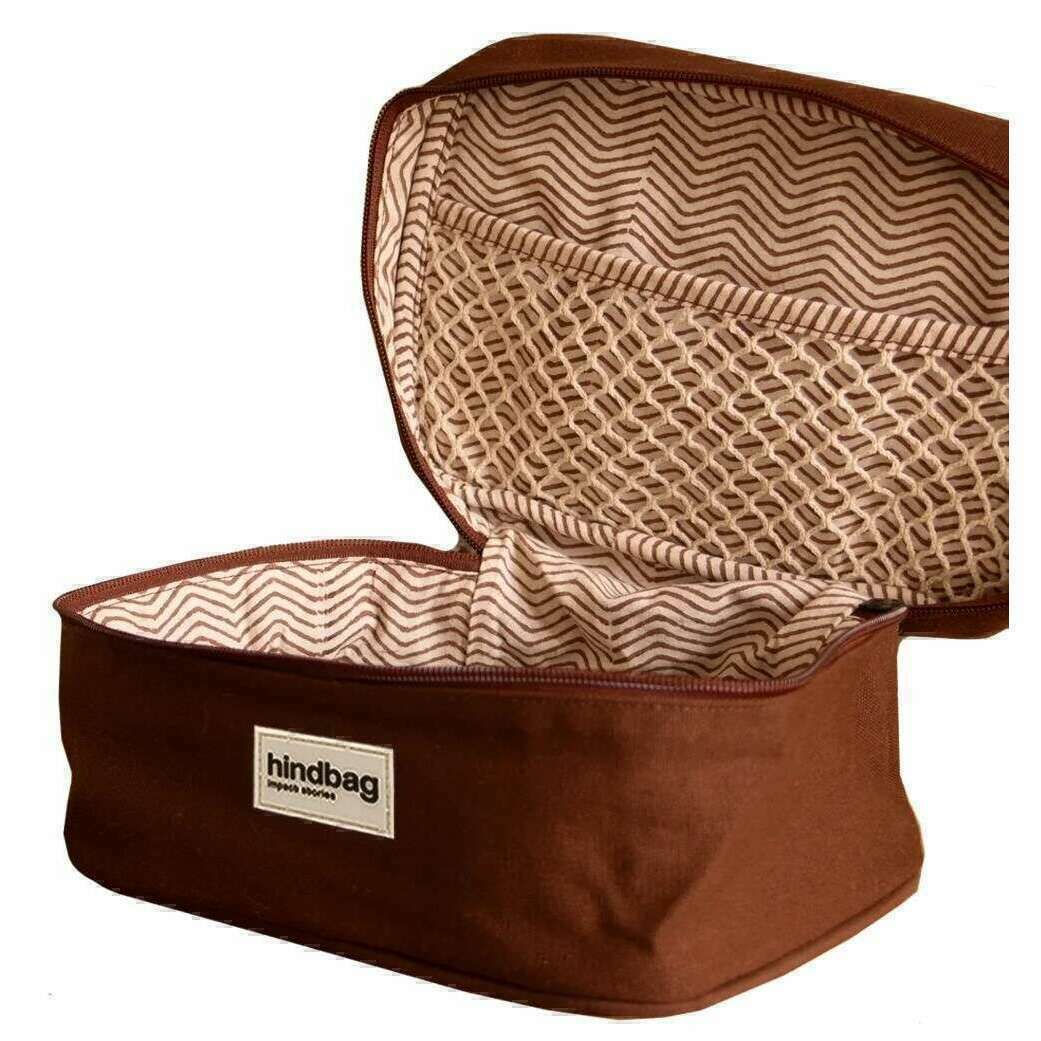 Ce sac de vanité à gaspard unisexe bien fait du sac postérieur est disponible dans une couleur brun chocolat et est fabriqué à partir de coton 100% biologique. Il mesure 13,5 cm (hauteur) x 16 cm (largeur) x 25 cm (profondeur). Tous les sacs sont livrés avec un emballage de sac d'histoire. Le sac de vanité halle-sac à dos - Chocolate Brown offre aux voyageurs et aux utilisateurs de tous les jours une façon pratique et élégante de garder leurs articles de toilette organisés et accessibles. Le filet intérieur est parfait pour organiser soigneusement des articles de toilette, des cosmétiques et d'autres articles personnels. Disponible dans une gamme de couleurs, cet accessoire à la mode représente une fusion harmonieuse des fonctionnalités et de l'esthétique, s'adressant à ceux qui apprécient le style et la praticité dans leur voyage.