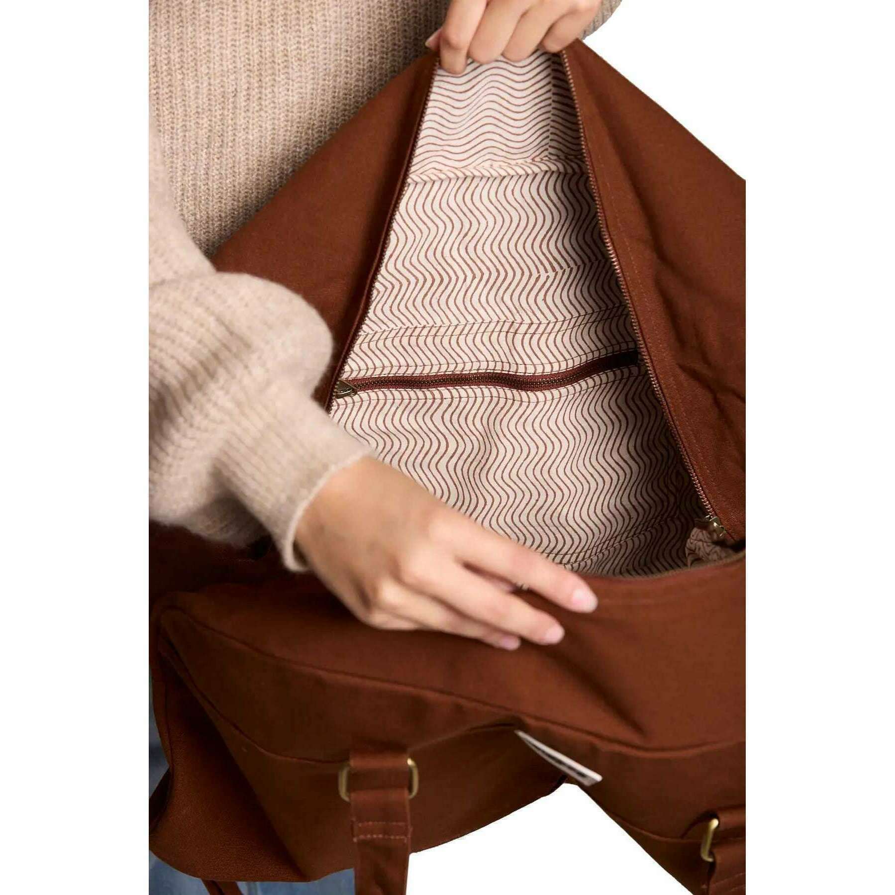 • Éco-convivialité, bandoulière réglable, poches multiples, grandes poignées, doublure de motif, capacité: 42L