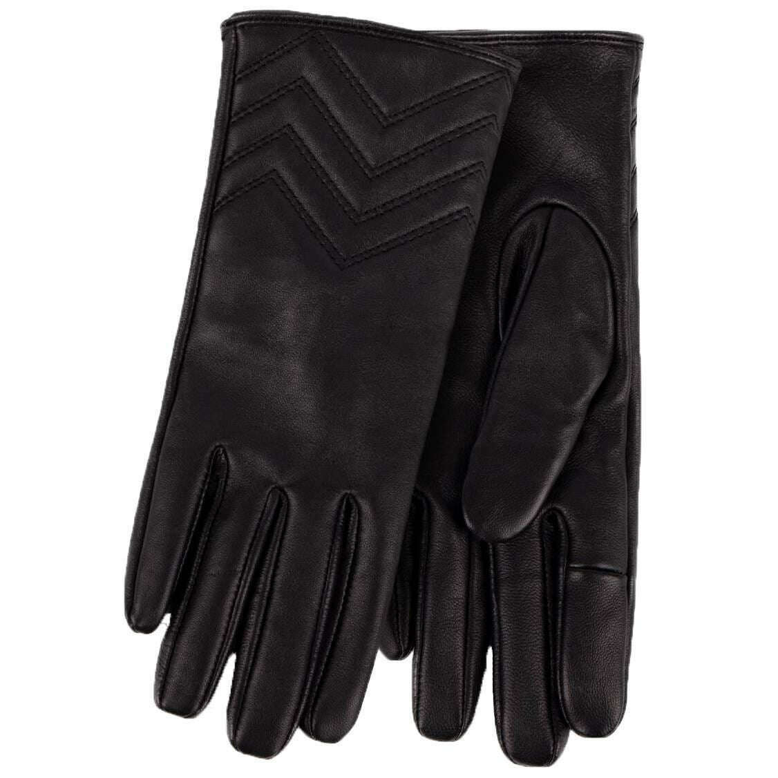 • Cuir véritable de qualité supérieure, doublure en cachemire, détails en chevron, technologie SmarTouch sur les index et les pouces.