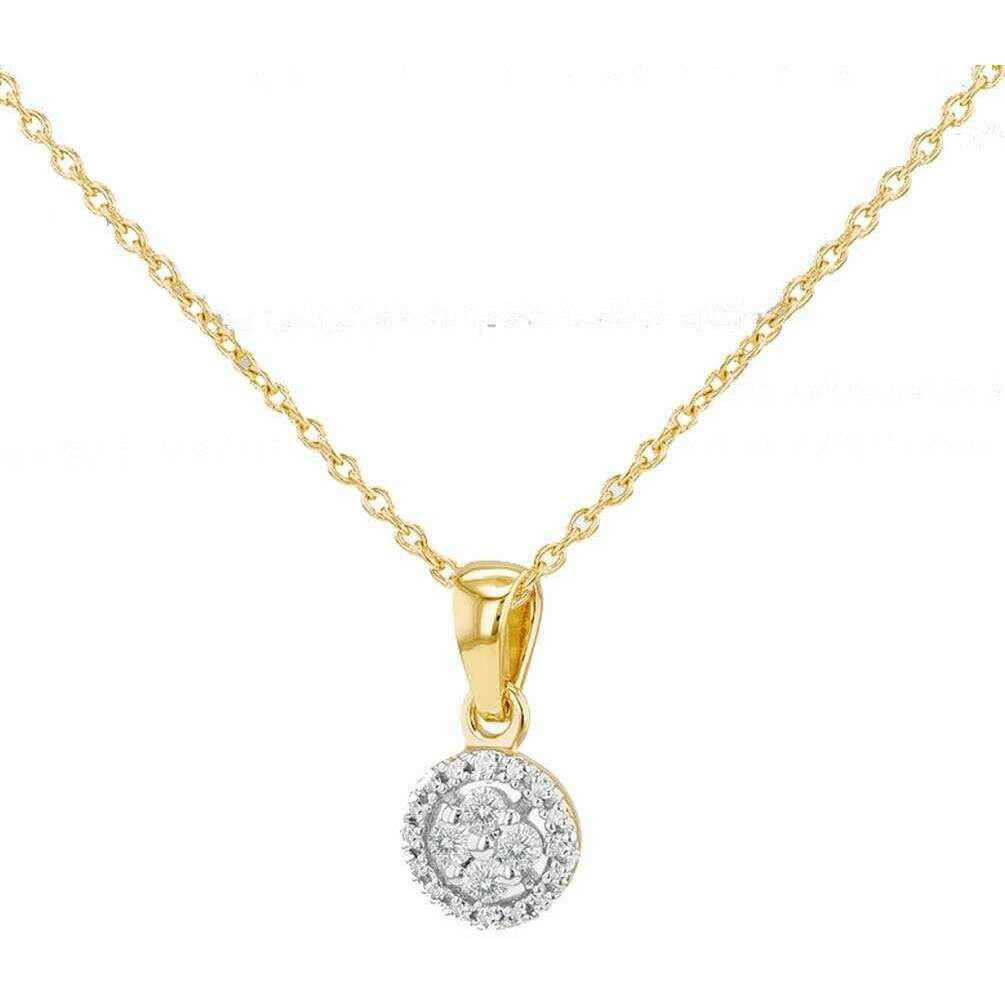 Ce collier halo de diamants créé en laboratoire de 0,11 ct pour femmes de KJ Beckett est de couleur or/transparent et est fabriqué en argent sterling. Tous les colliers sont livrés complets avec emballage. Le collier halo de diamants créés en laboratoire KJ Beckett 0,11 ct - Or/Transparent est l'endroit où l'éclat intemporel rencontre l'artisanat moderne. Fabriqué en argent sterling et fini avec un riche placage en or, le design présente un brillant diamant créé en laboratoire de 0,11 ct entouré d'un halo délicat qui rehausse son éclat et son feu. Créé de manière éthique et fini de manière experte, ce collier est une pièce significative qui offre un luxe classique avec une touche contemporaine.
