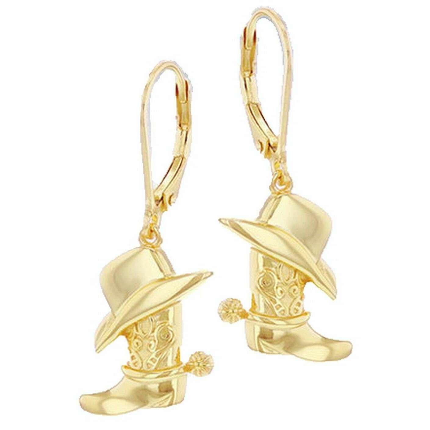 Présentation de ce chapeau de cowboy et boucle d'oreille à levier de botte pour femmes de KJ Beckett, ils sont fabriqués en argent sterling de couleur dorée. Toutes les boucles d'oreilles sont livrées complètes avec emballage. Les boucles d'oreilles pendantes avec chapeau de cowboy et levier de botte KJ Beckett - Or sont des boucles d'oreilles pendantes ludiques mais élégantes en argent sterling plaqué or. Fabriquées en argent sterling et finies en plaqué or brillant, chaque boucle d'oreille présente des breloques détaillées en forme de chapeau de cowboy et de bottes qui capturent le style country classique. Parfaites pour un usage quotidien ou pour des occasions spéciales sur le thème du western, ces boucles d'oreilles sont un délicieux cadeau pour les passionnés de cow-girl ou pour tous ceux qui aiment les bijoux uniques et fantaisistes.