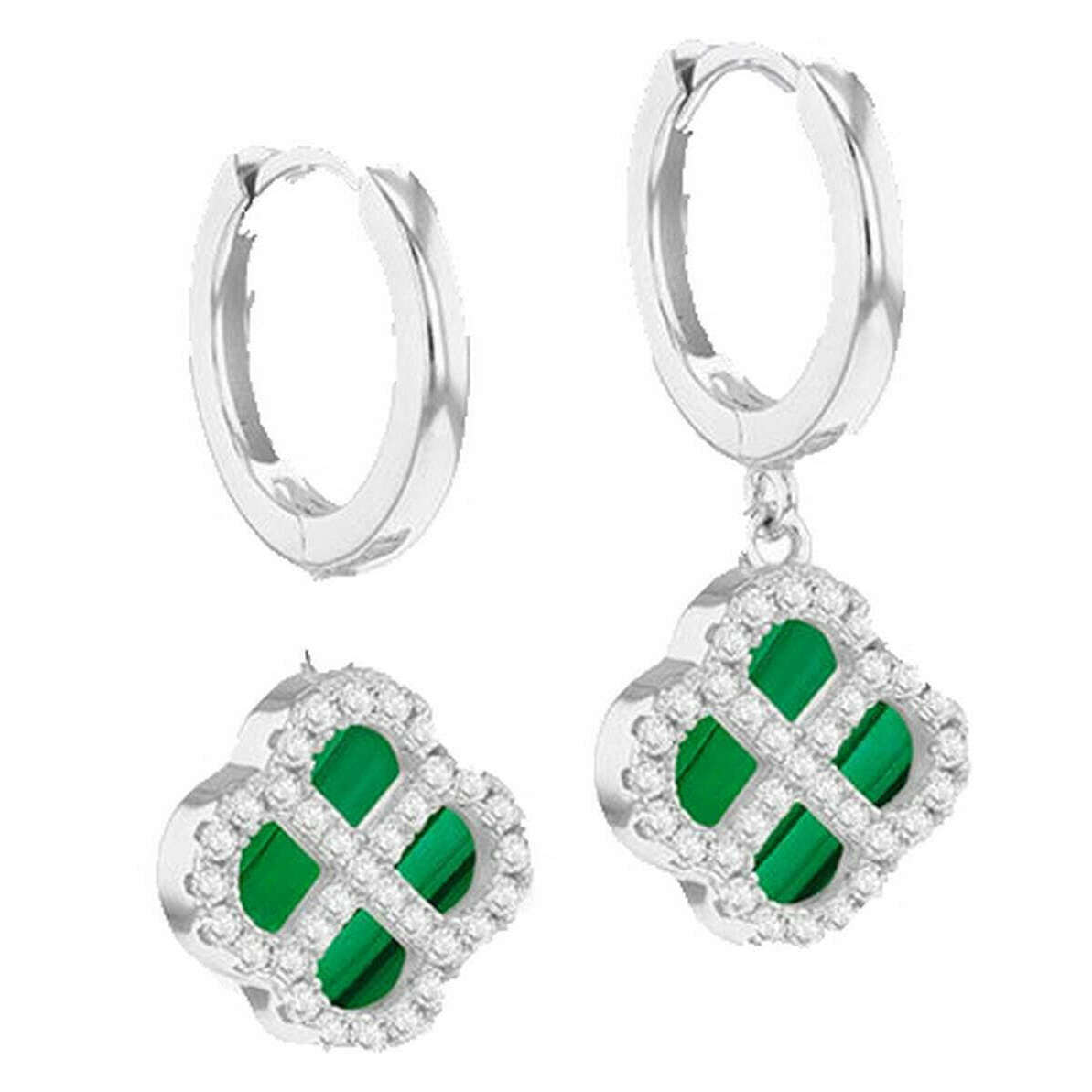 Boucles d'oreilles créoles trèfle malachite KJ Beckett - Argent/Vert