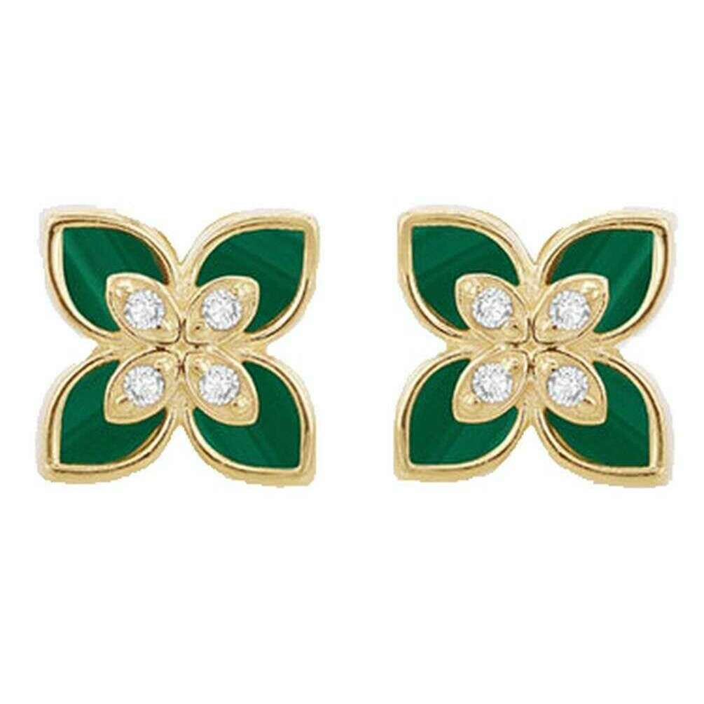KJ Beckett Boucle d'oreille à tige en forme de fleur de malachite - Or jaune/Vert