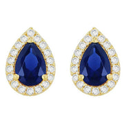 Boucle d'oreille halo en forme de poire KJ Beckett - Or jaune/Marine