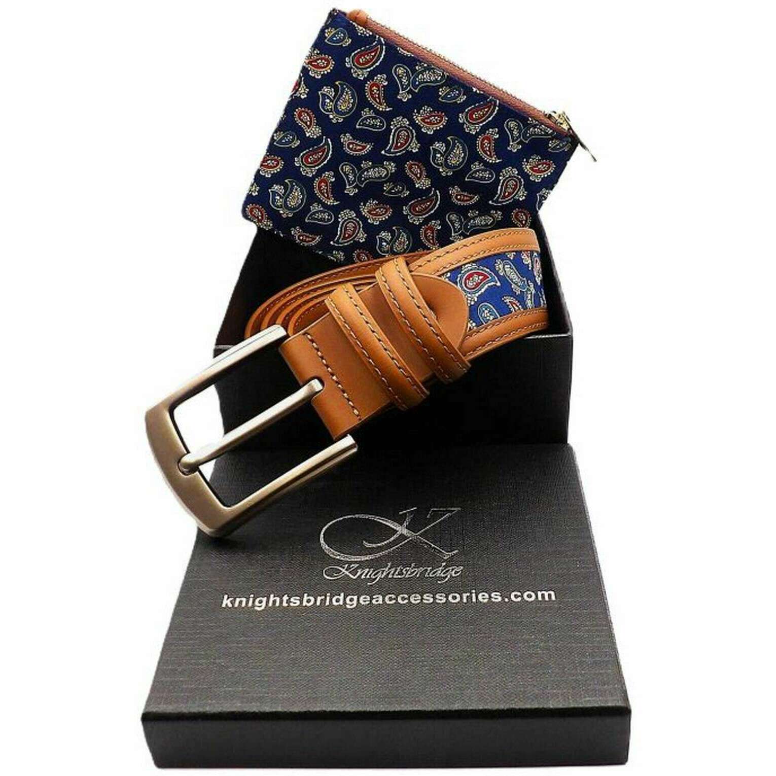 Knightsbridge Neckwear Ensemble ceinture et portefeuille Belgravia Paisley - Beige beige