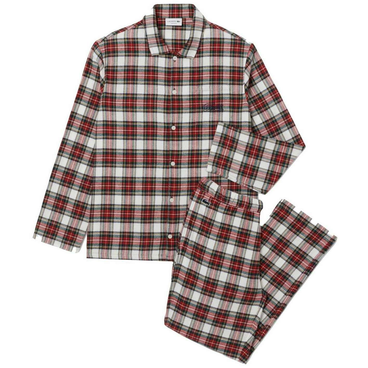 Ensemble de pyjama en popeline à carreaux Lacoste - Rouge coccinelle/Blanc/Vert