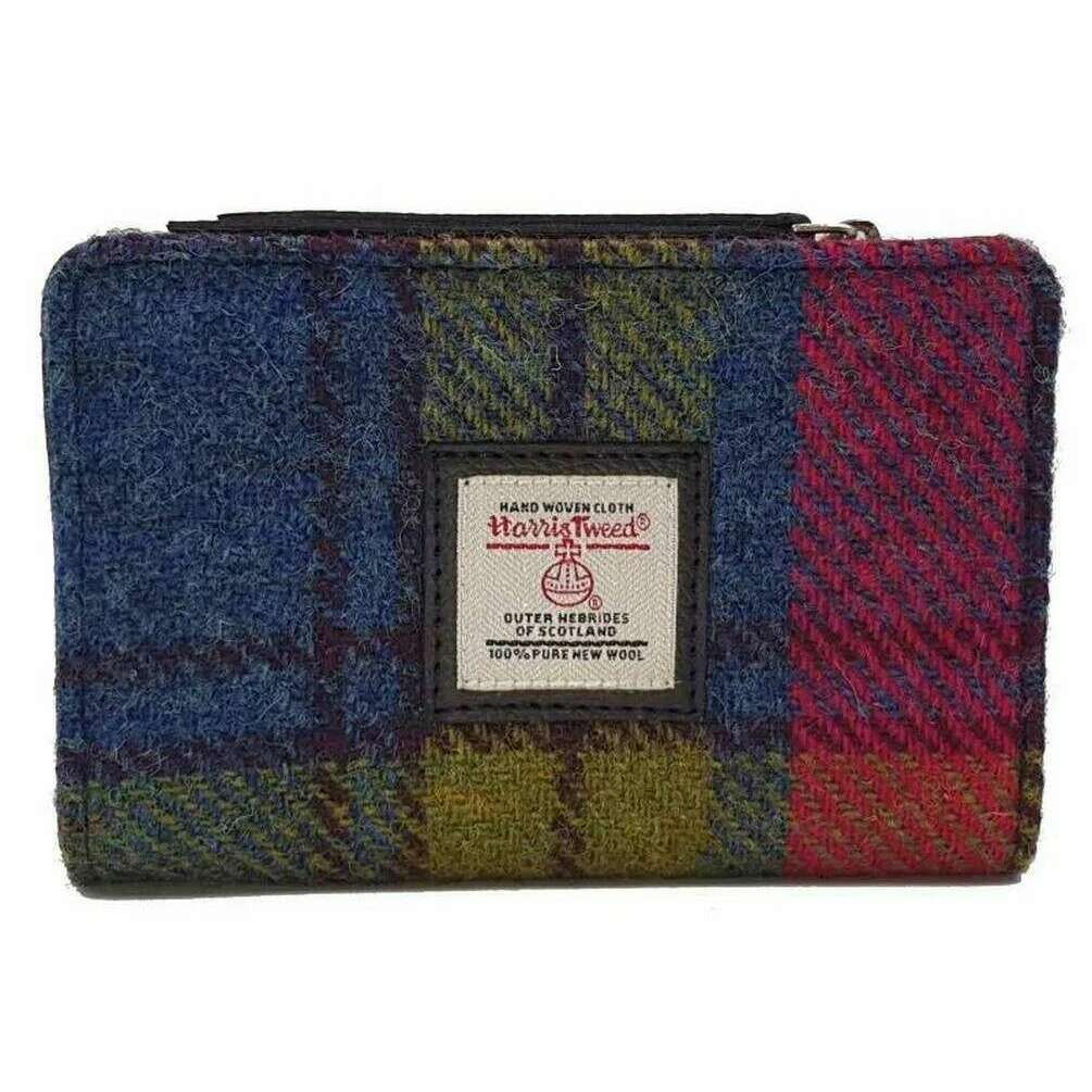Sac à main zippé moyen Maccessori Harris Tweed - Rose/Bleu