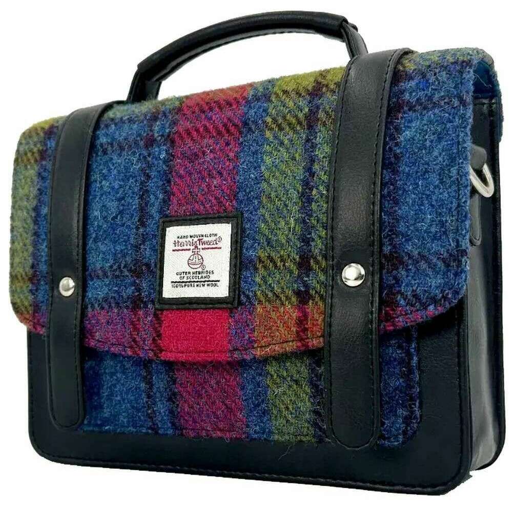 Sac messager Maccessori Harris Tweed - Rose/Bleu