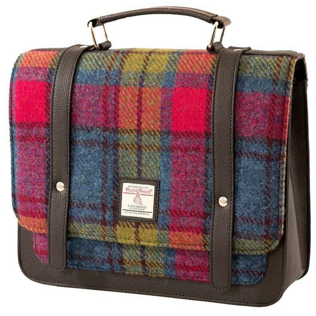 Mini sac messager Maccessori Harris Tweed - Bleu/Rose